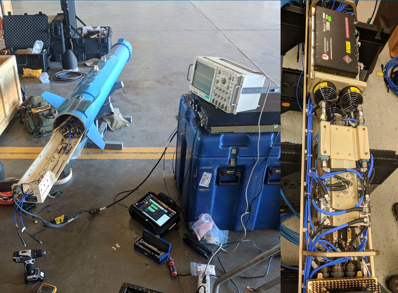 The radar test systems consisted of equipment pods that were mounted under the wings of small military or civilian aircraft. I developed and tested racks of radar test equipment in the lab, packed and shipped the equipment to the field, and coordinated the deployment of other crew members for the rigorous test schedules. In the field, I installed the racks and equipment pods onto the aircraft, plumbed all of the RF and control cables between the equipment pods and system rack, tested and calibrated the systems, then operated the system in various radar test exercises over land, air and sea.